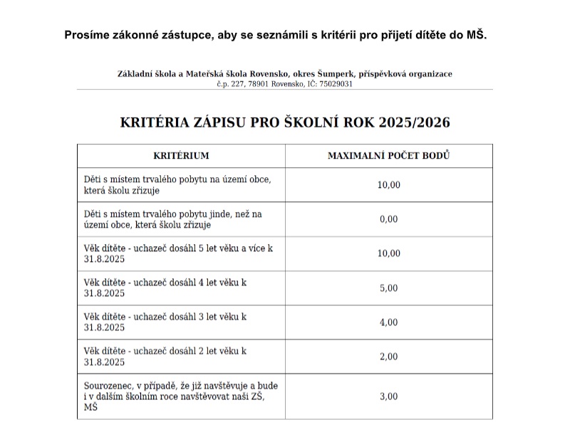 Další informace k zápisu do MŠ: